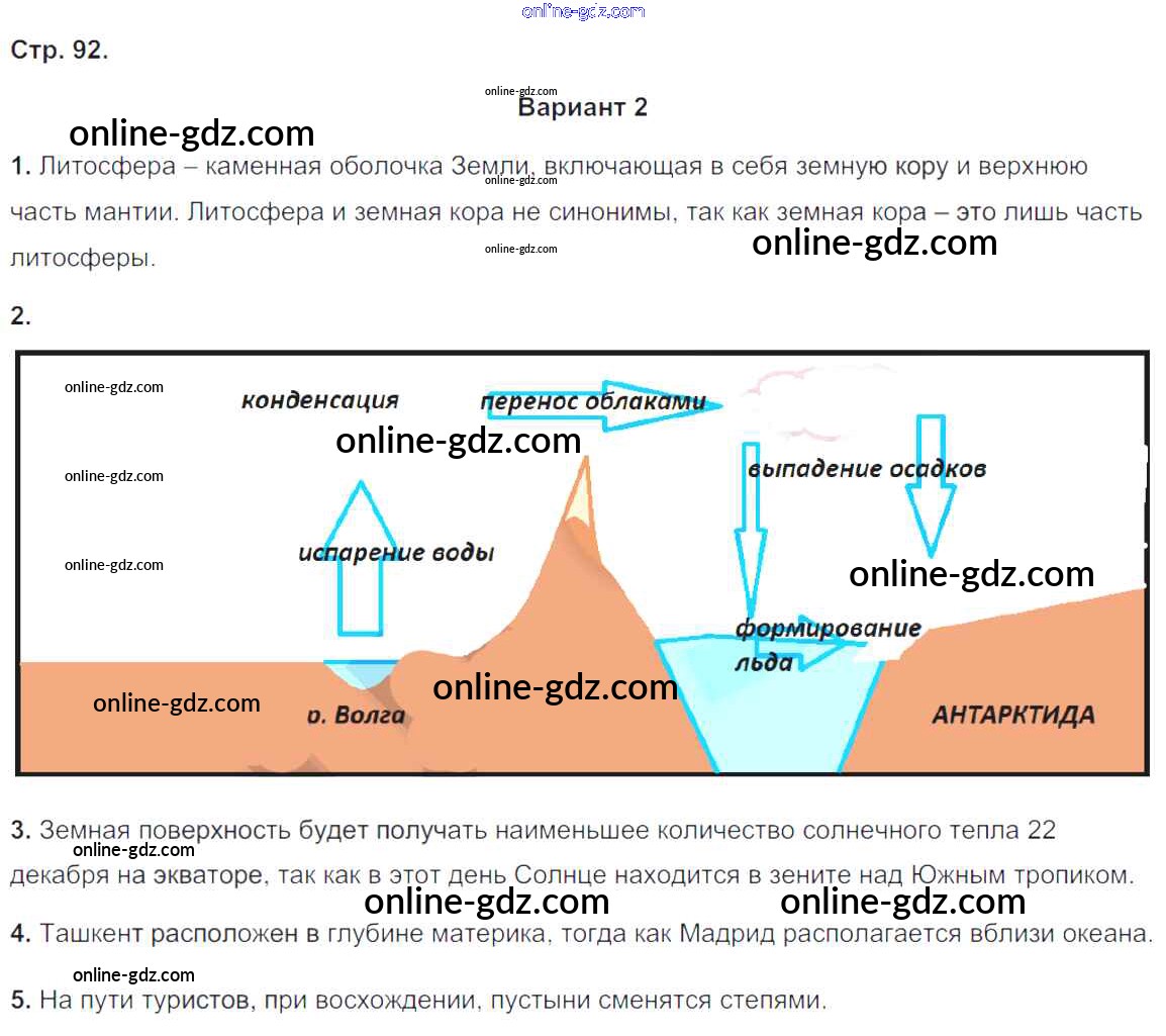 Готовые домашние задания по Географии за 5, 6 класс Тетрадь-экзаменатор Барабанов Сферы 2017 - Страницы 92