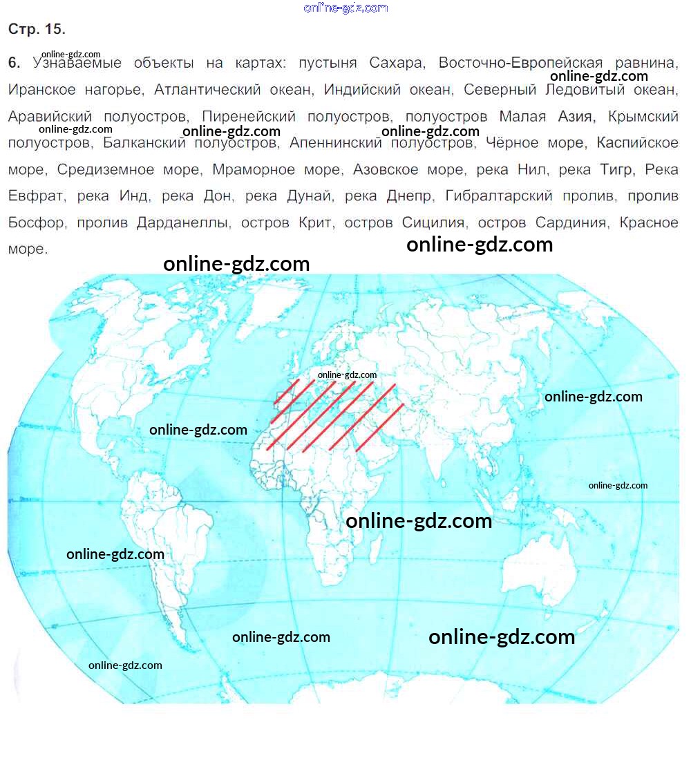 Готовые домашние задания по Географии за 5, 6 класс Тетрадь-тренажер Лобжанидзе Сферы 2014 - Часть 1. Страницы 15