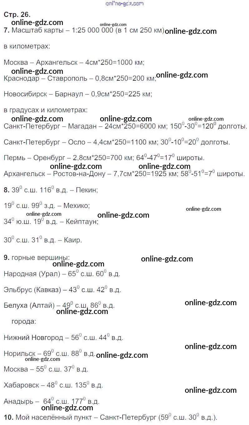 Готовые домашние задания по Географии за 5, 6 класс Тетрадь-тренажер Лобжанидзе Сферы 2014 - Часть 1. Страницы 26
