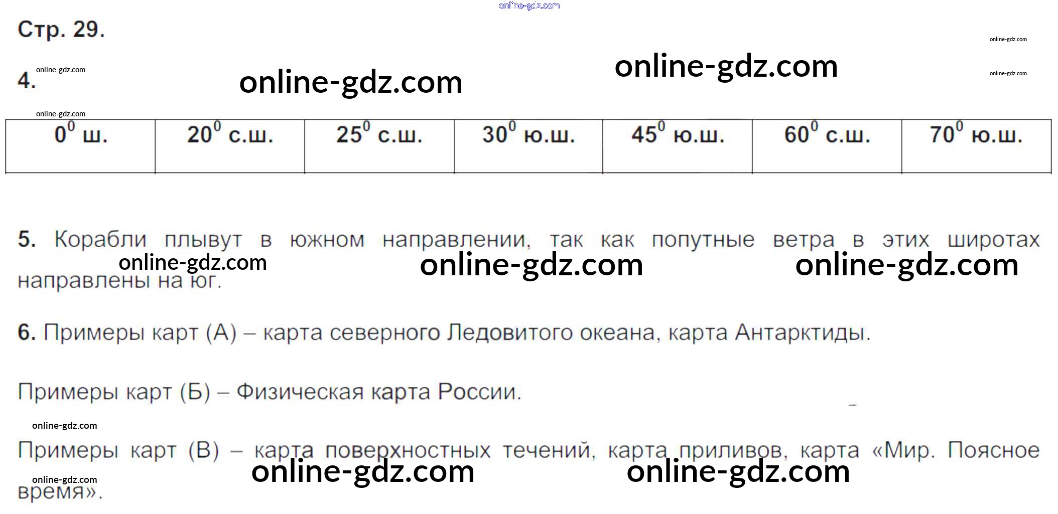Готовые домашние задания по Географии за 5, 6 класс Тетрадь-тренажер Лобжанидзе Сферы 2014 - Часть 1. Страницы 29