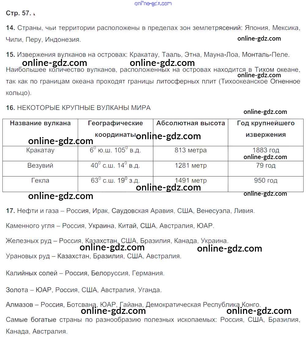 Готовые домашние задания по Географии за 5, 6 класс Тетрадь-тренажер Лобжанидзе Сферы 2014 - Часть 1. Страницы 57