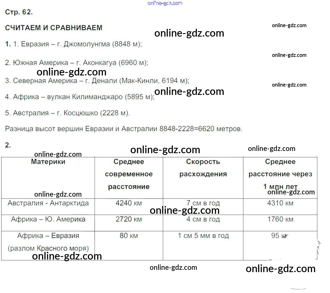 Готовые домашние задания по Географии за 5, 6 класс Тетрадь-тренажер Лобжанидзе Сферы 2014 - Часть 1. Страницы 62