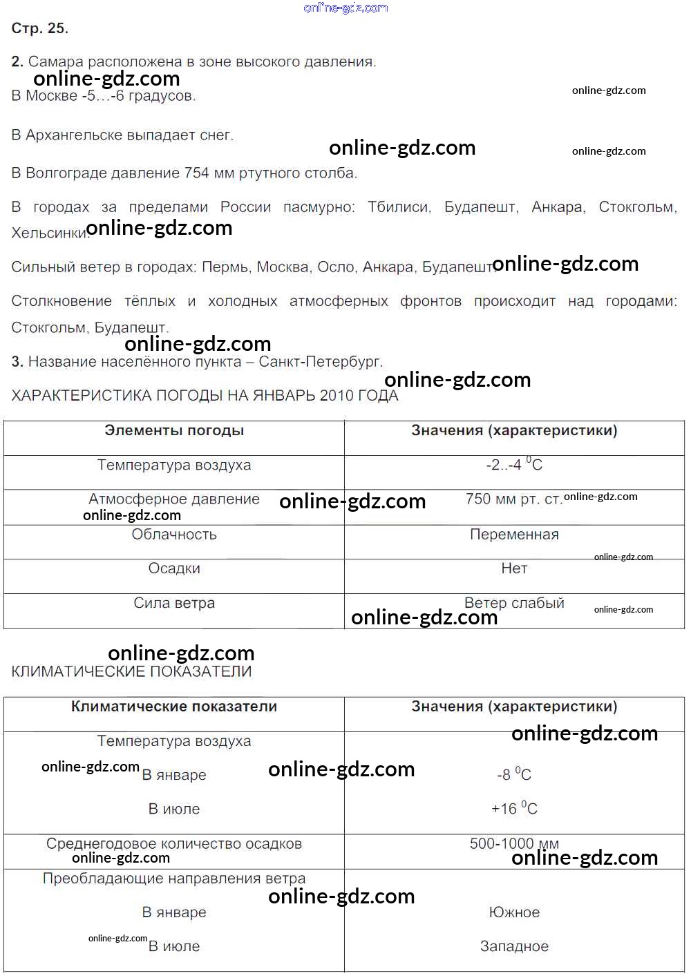 Готовые домашние задания по Географии за 5, 6 класс Тетрадь-тренажер Лобжанидзе Сферы 2014 - Часть 2. Страницы 25