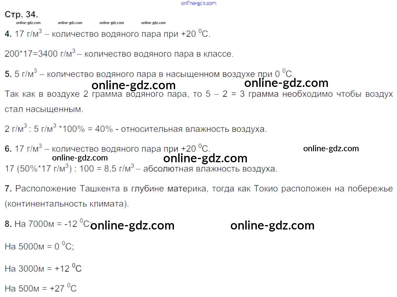 Готовые домашние задания по Географии за 5, 6 класс Тетрадь-тренажер Лобжанидзе Сферы 2014 - Часть 2. Страницы 34