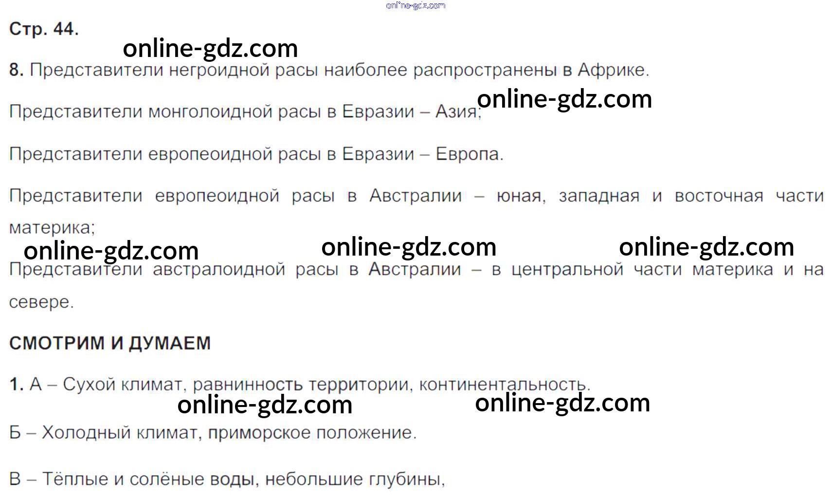 Готовые домашние задания по Географии за 5, 6 класс Тетрадь-тренажер Лобжанидзе Сферы 2014 - Часть 2. Страницы 44