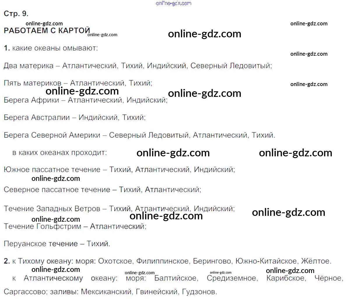 Готовые домашние задания по Географии за 5, 6 класс Тетрадь-тренажер Лобжанидзе Сферы 2014 - Часть 2. Страницы 9