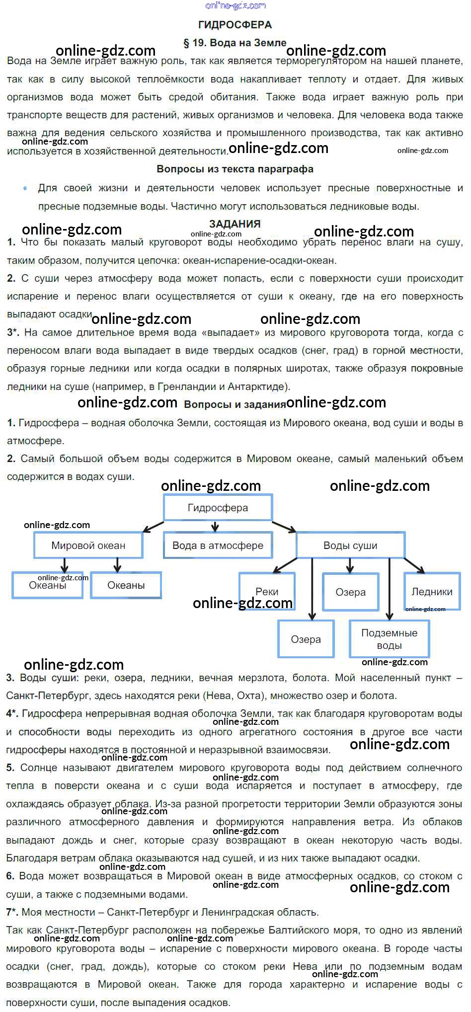 Готовые домашние задания по Географии за 6 класс Учебник Герасимова, Неклюкова Вертикаль 2019 - Параграфы §19. Вода на Земле