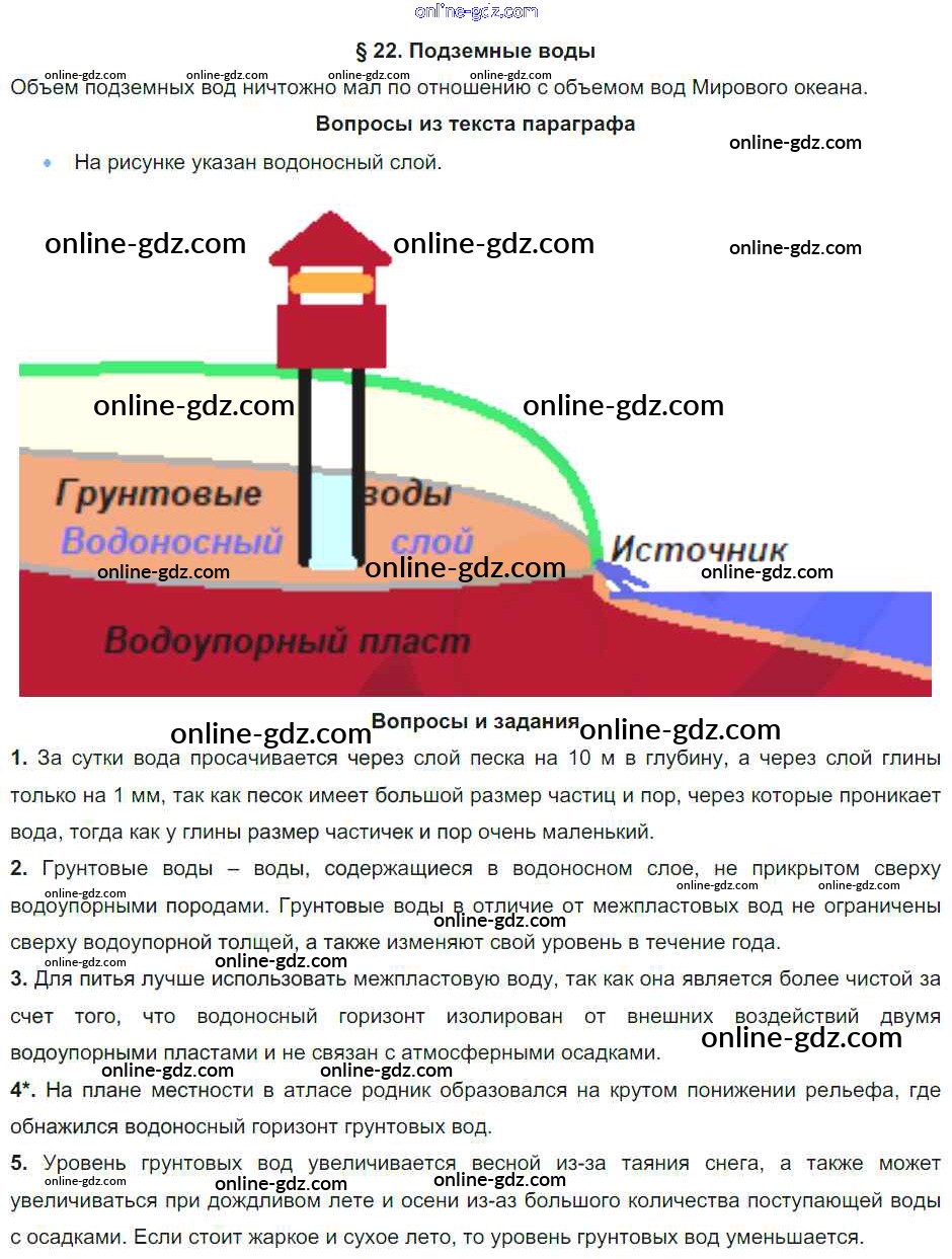 Готовые домашние задания по Географии за 6 класс Учебник Герасимова, Неклюкова Вертикаль 2019 - Параграфы §22. Подземные воды