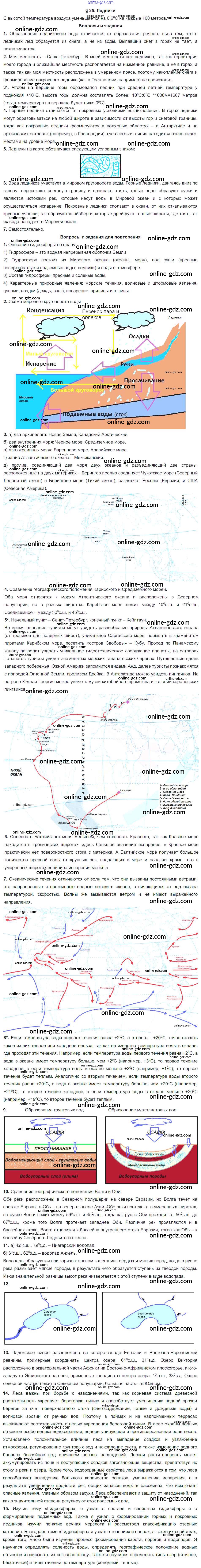 Готовые домашние задания по Географии за 6 класс Учебник Герасимова, Неклюкова Вертикаль 2019 - Параграфы §25. Ледники