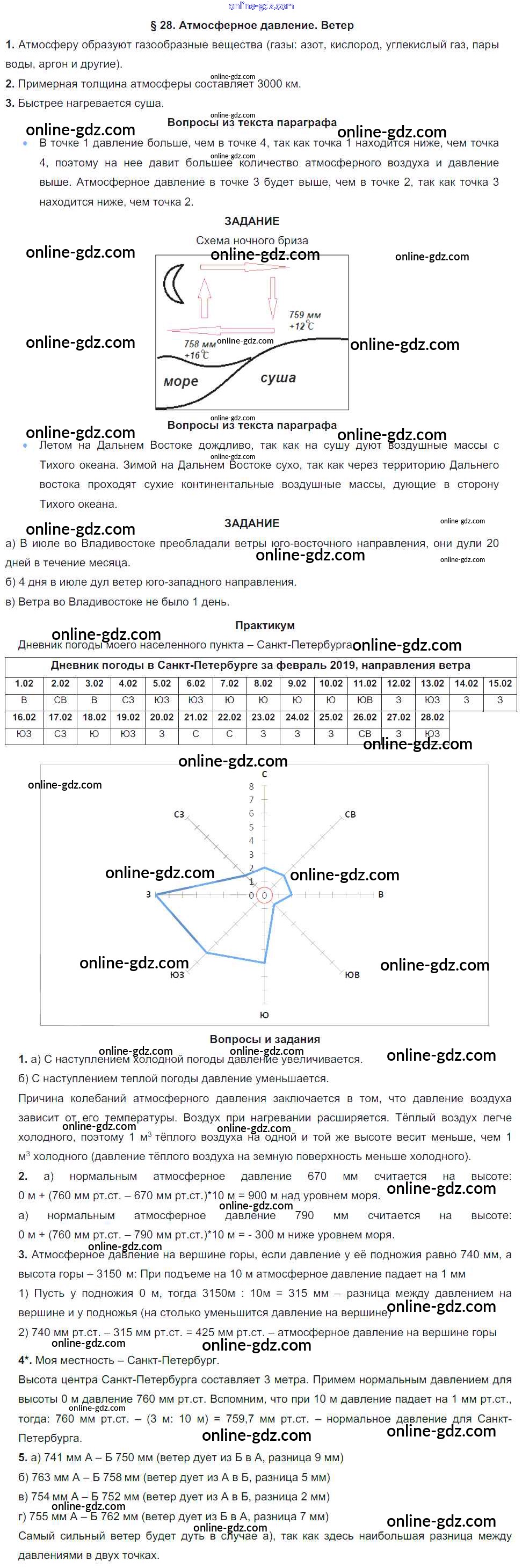 Готовые домашние задания по Географии за 6 класс Учебник Герасимова, Неклюкова Вертикаль 2019 - Параграфы §28. Атмосферное давление. Ветер