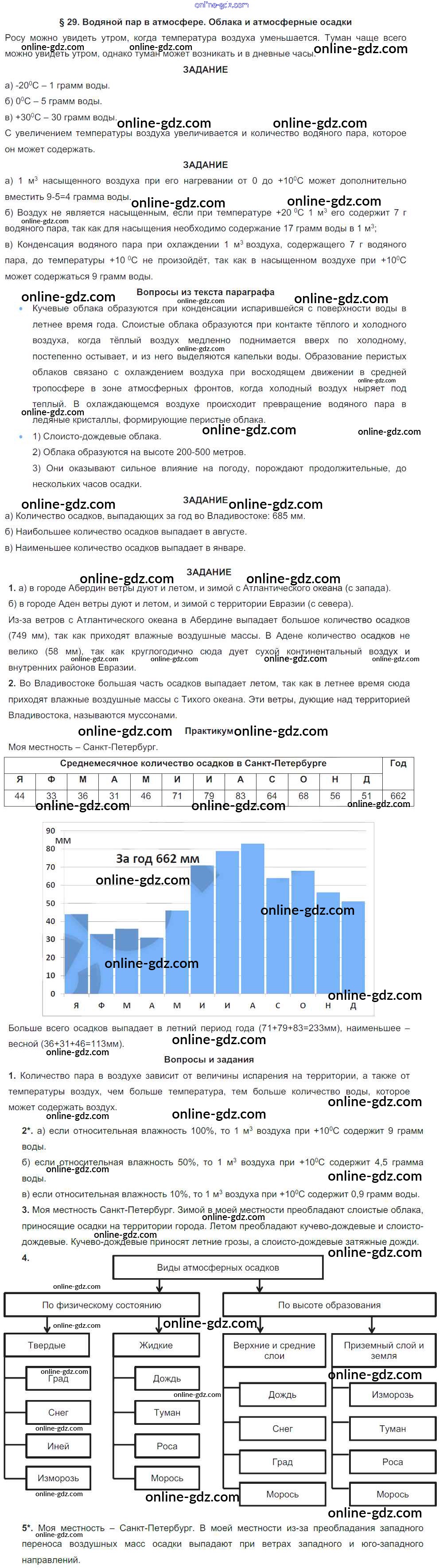 Готовые домашние задания по Географии за 6 класс Учебник Герасимова, Неклюкова Вертикаль 2019 - Параграфы §29. Водяной пар в атмосфере. Облака и атмосферные осадки