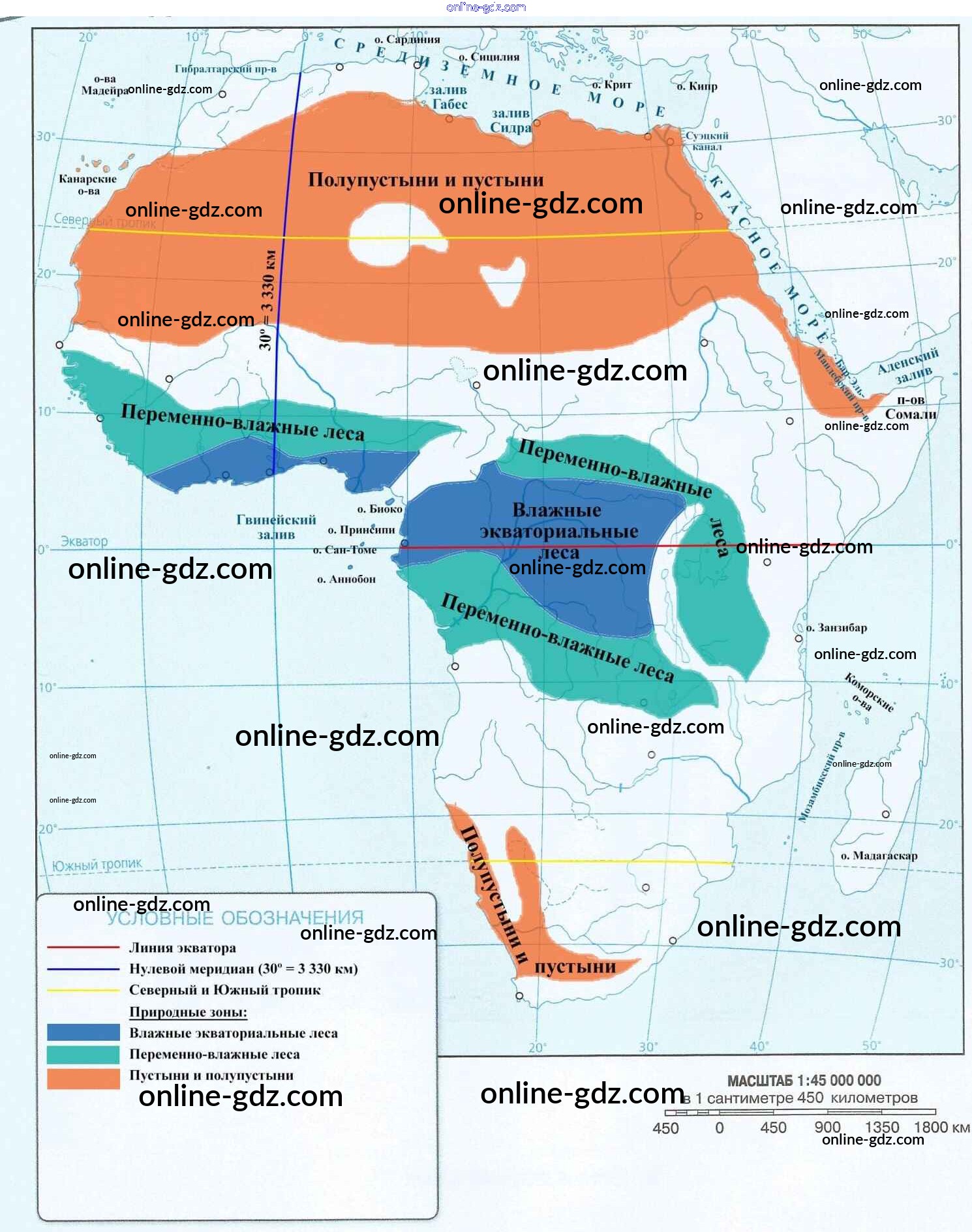 Готовые домашние задания по Географии за 7 класс Контурные карты Петрова Полярная звезда 2022 - Страница 16 Африка. Физическая карта