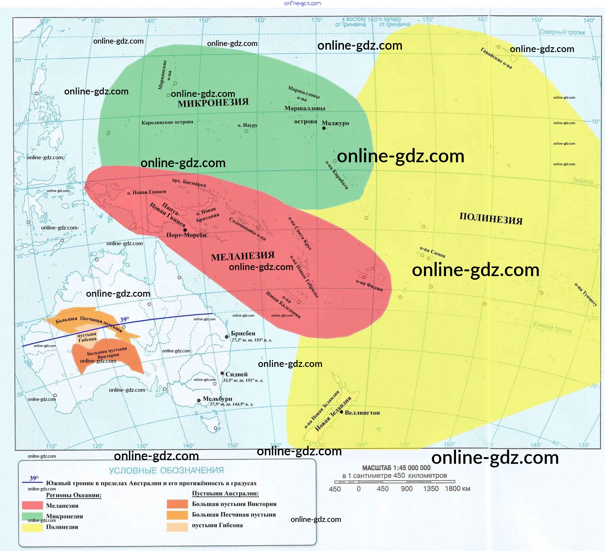 Готовые домашние задания по Географии за 7 класс Контурные карты Петрова Полярная звезда 2022 - Страница 18 Австралия и Океания. Политическая карта