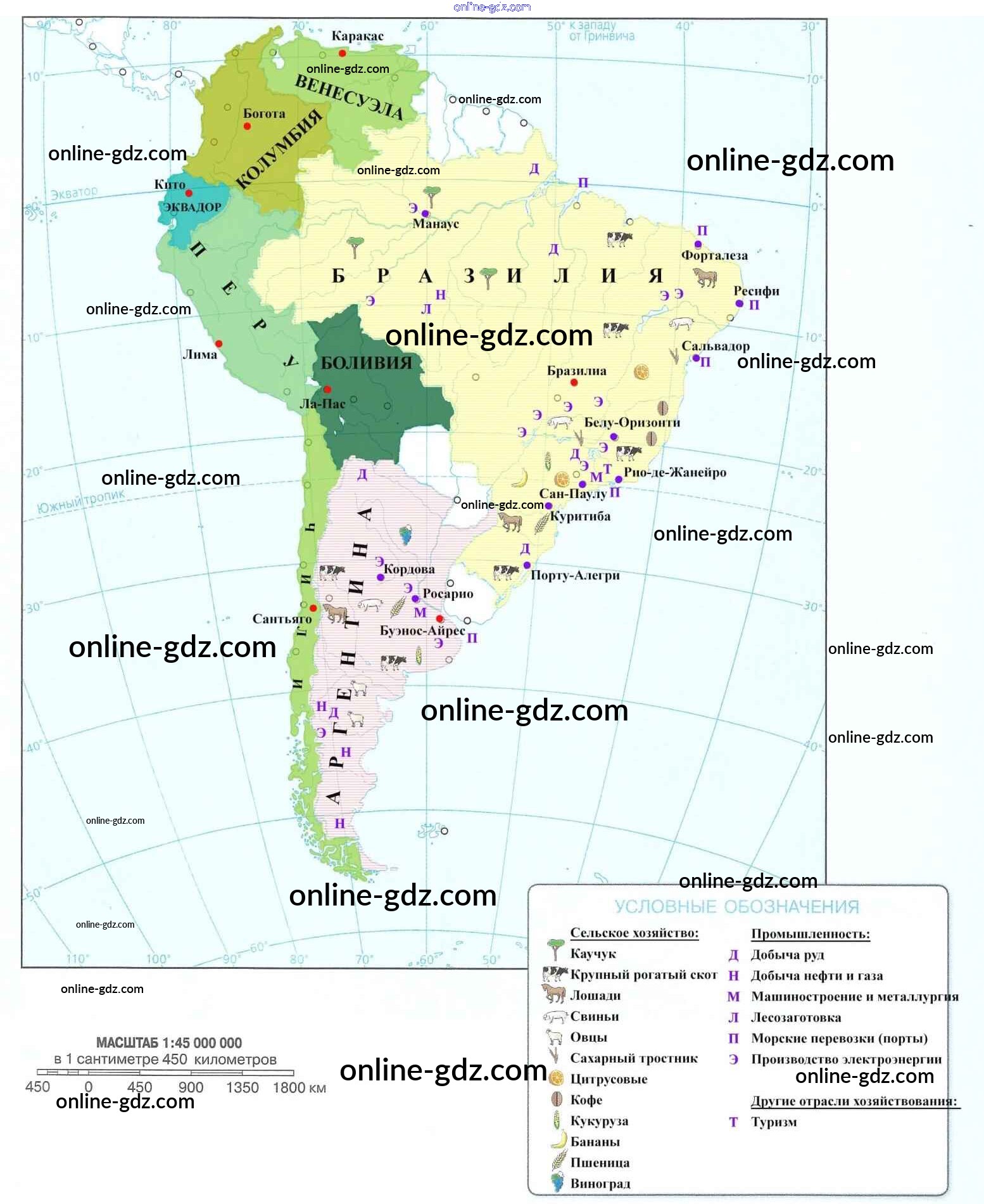Готовые домашние задания по Географии за 7 класс Контурные карты Петрова Полярная звезда 2022 - Страница 21 Южная Америка. Политическая карта