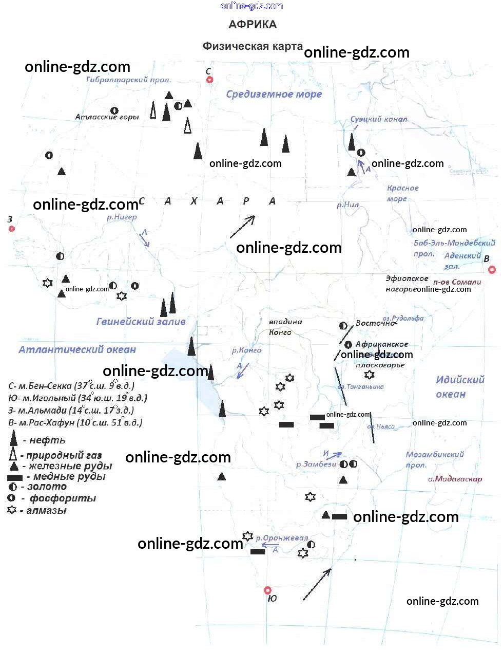 Готовые домашние задания по Географии за 7 класс Контурные карты Котляр Сферы 2019 - Страницы 22