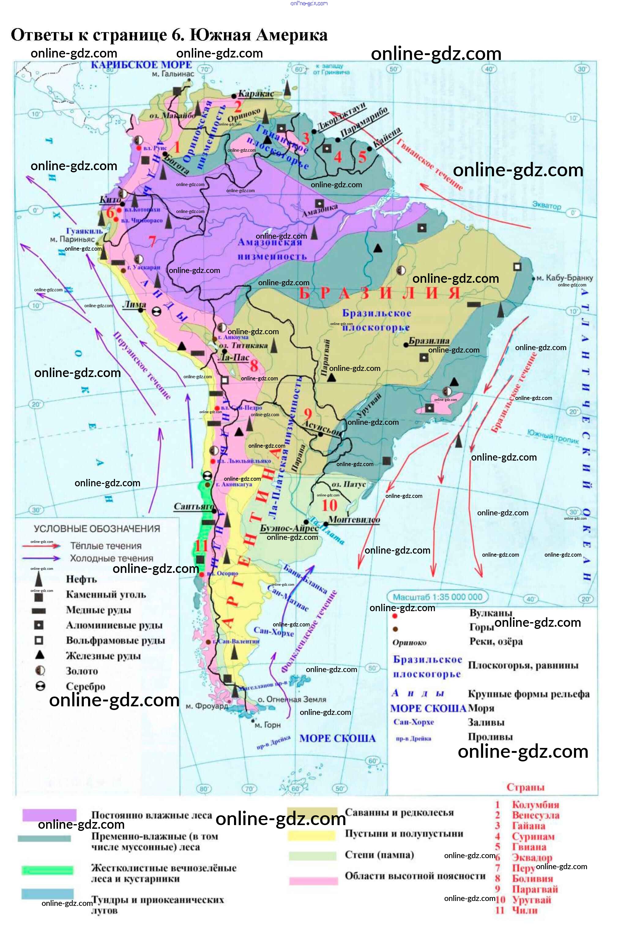 Готовые домашние задания по Географии за 7 класс Контурные карты Курбский 2018 - Издание 2021 год стр.6