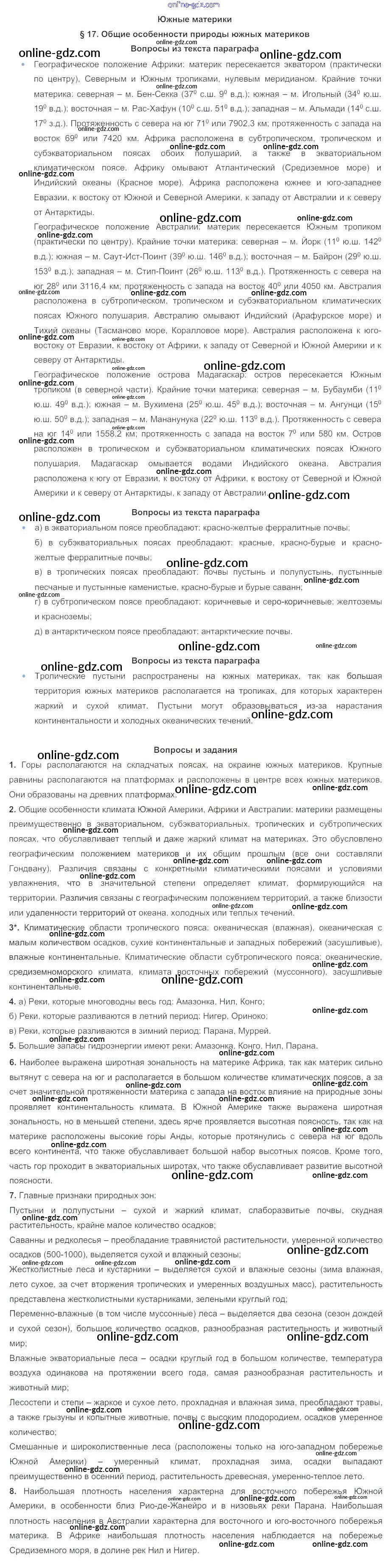 Готовые домашние задания по Географии за 7 класс Учебник Коринская, Душина 2017 - Параграфы 17