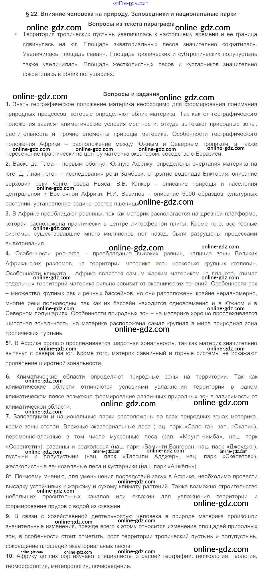 Готовые домашние задания по Географии за 7 класс Учебник Коринская, Душина 2017 - Параграфы 22