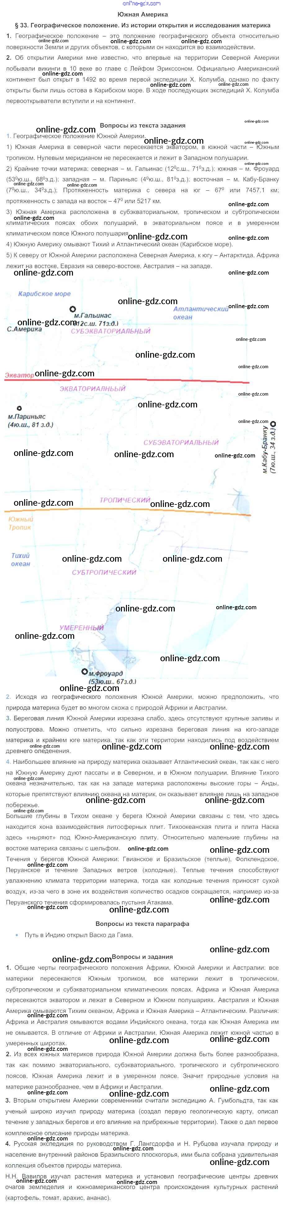Готовые домашние задания по Географии за 7 класс Учебник Коринская, Душина 2017 - Параграфы 33