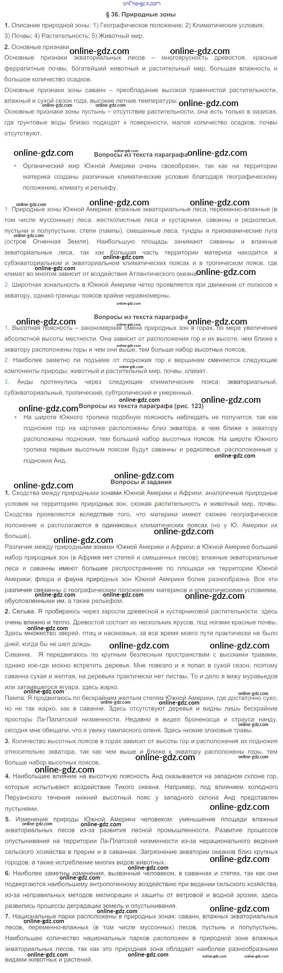 Готовые домашние задания по Географии за 7 класс Учебник Коринская, Душина 2017 - Параграфы 36