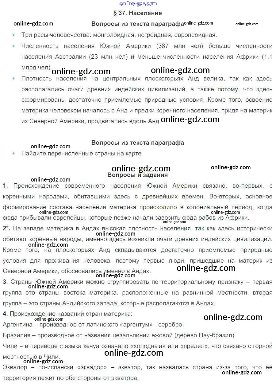 Готовые домашние задания по Географии за 7 класс Учебник Коринская, Душина 2017 - Параграфы 37
