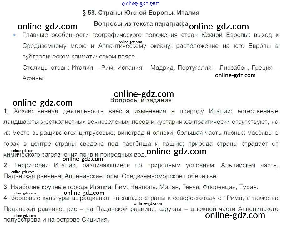 Готовые домашние задания по Географии за 7 класс Учебник Коринская, Душина 2017 - Параграфы 58