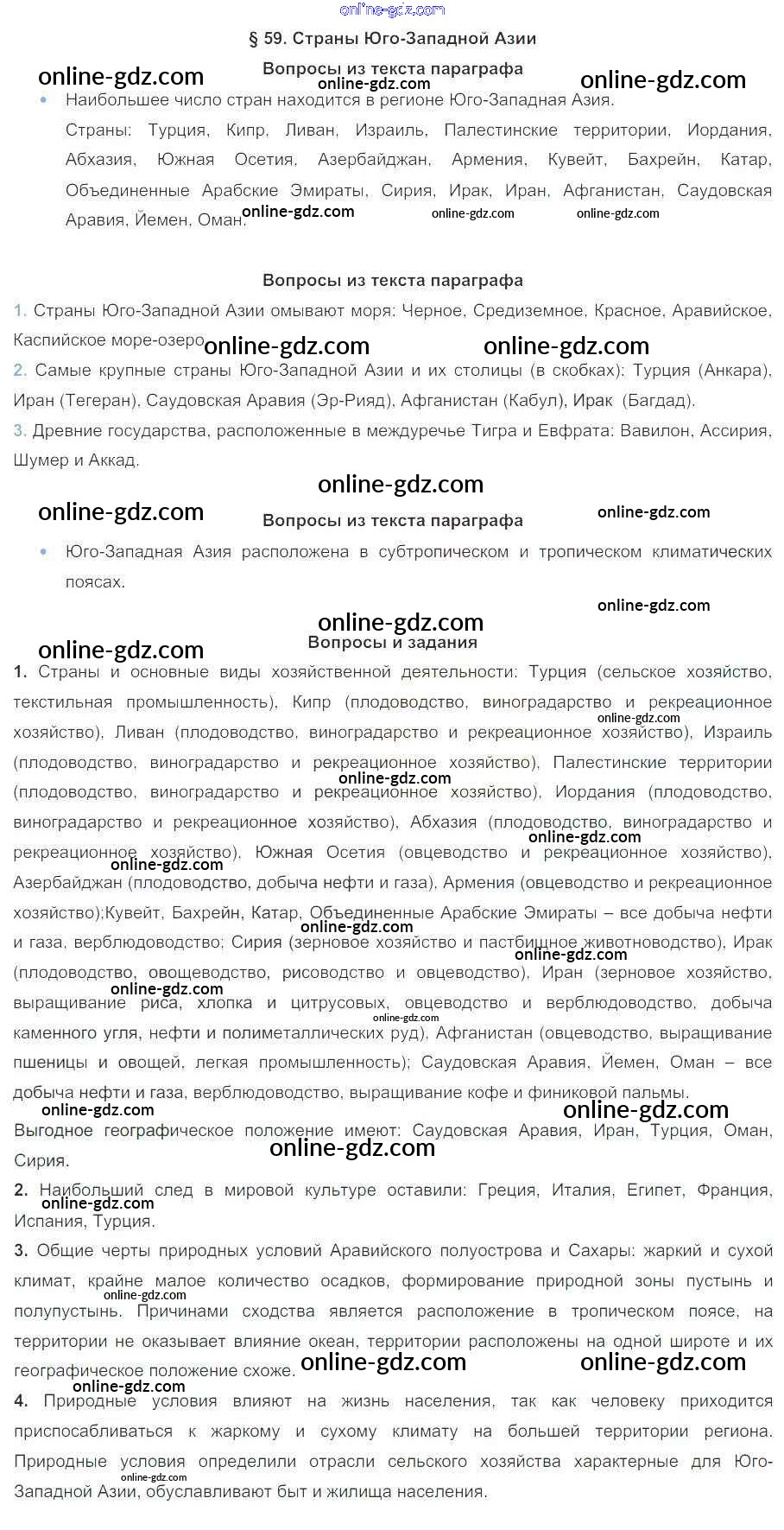 Готовые домашние задания по Географии за 7 класс Учебник Коринская, Душина 2017 - Параграфы 59