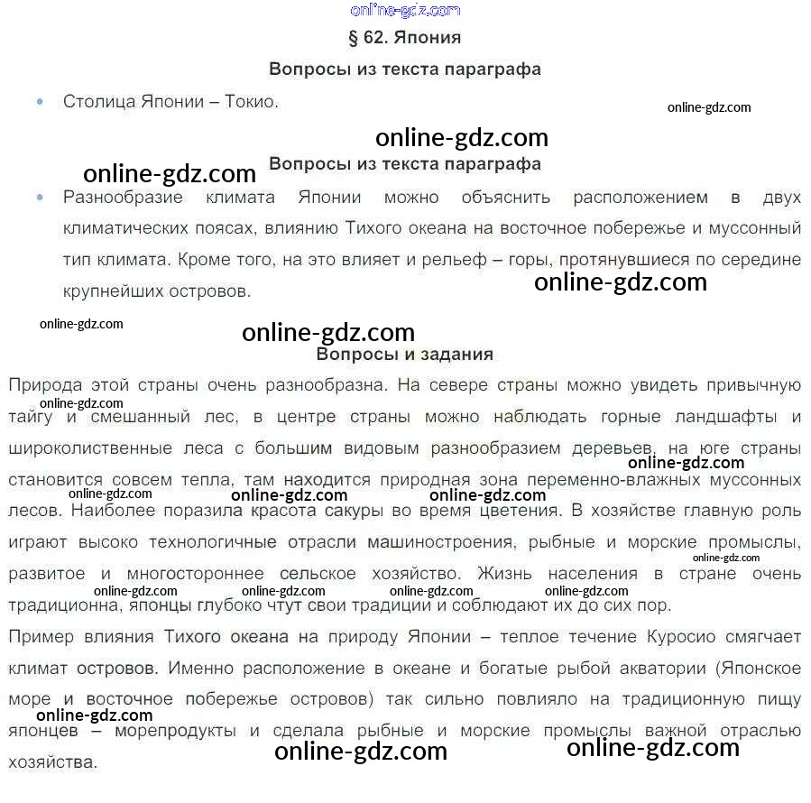 Готовые домашние задания по Географии за 7 класс Учебник Коринская, Душина 2017 - Параграфы 62