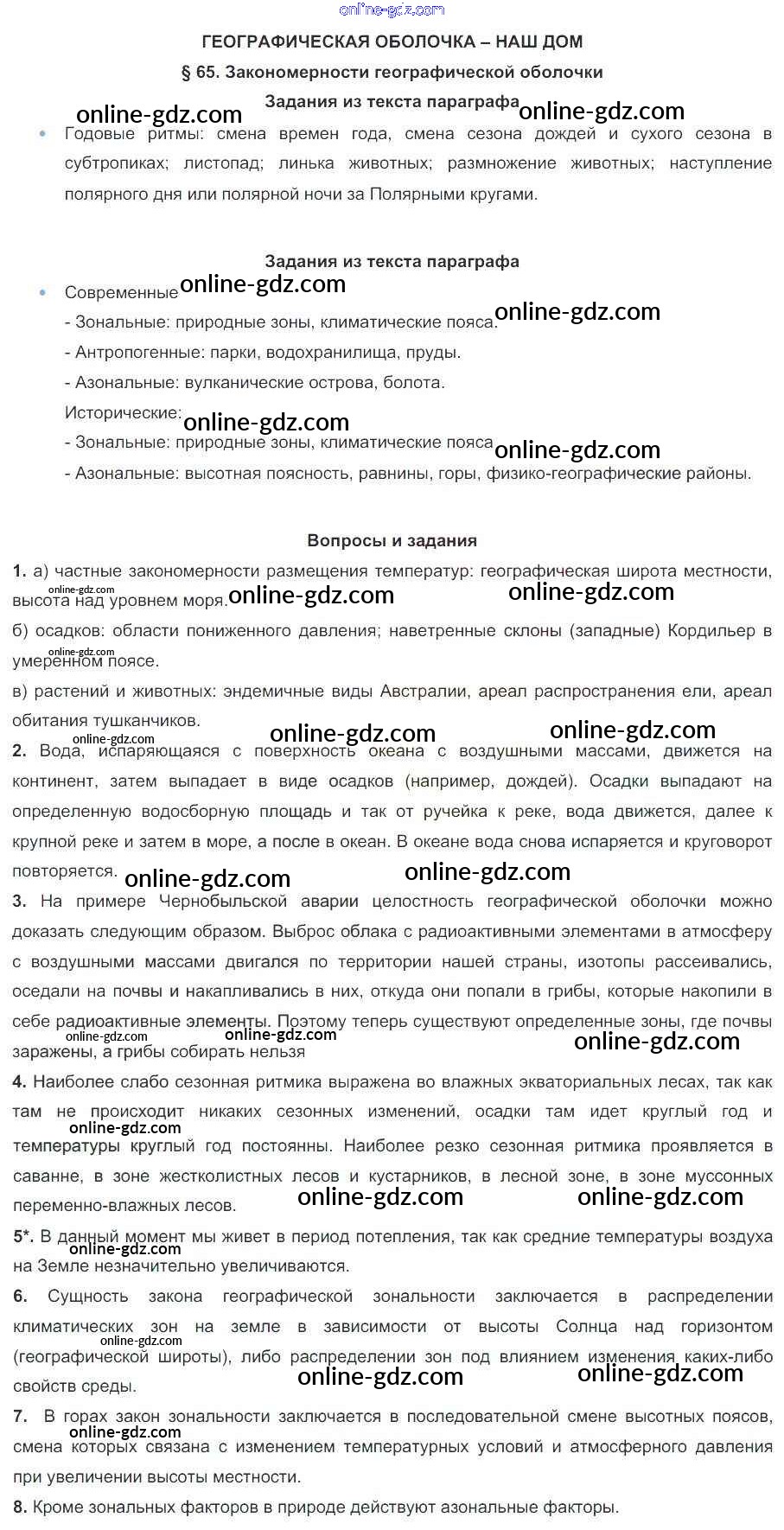 Готовые домашние задания по Географии за 7 класс Учебник Коринская, Душина 2017 - Параграфы 65