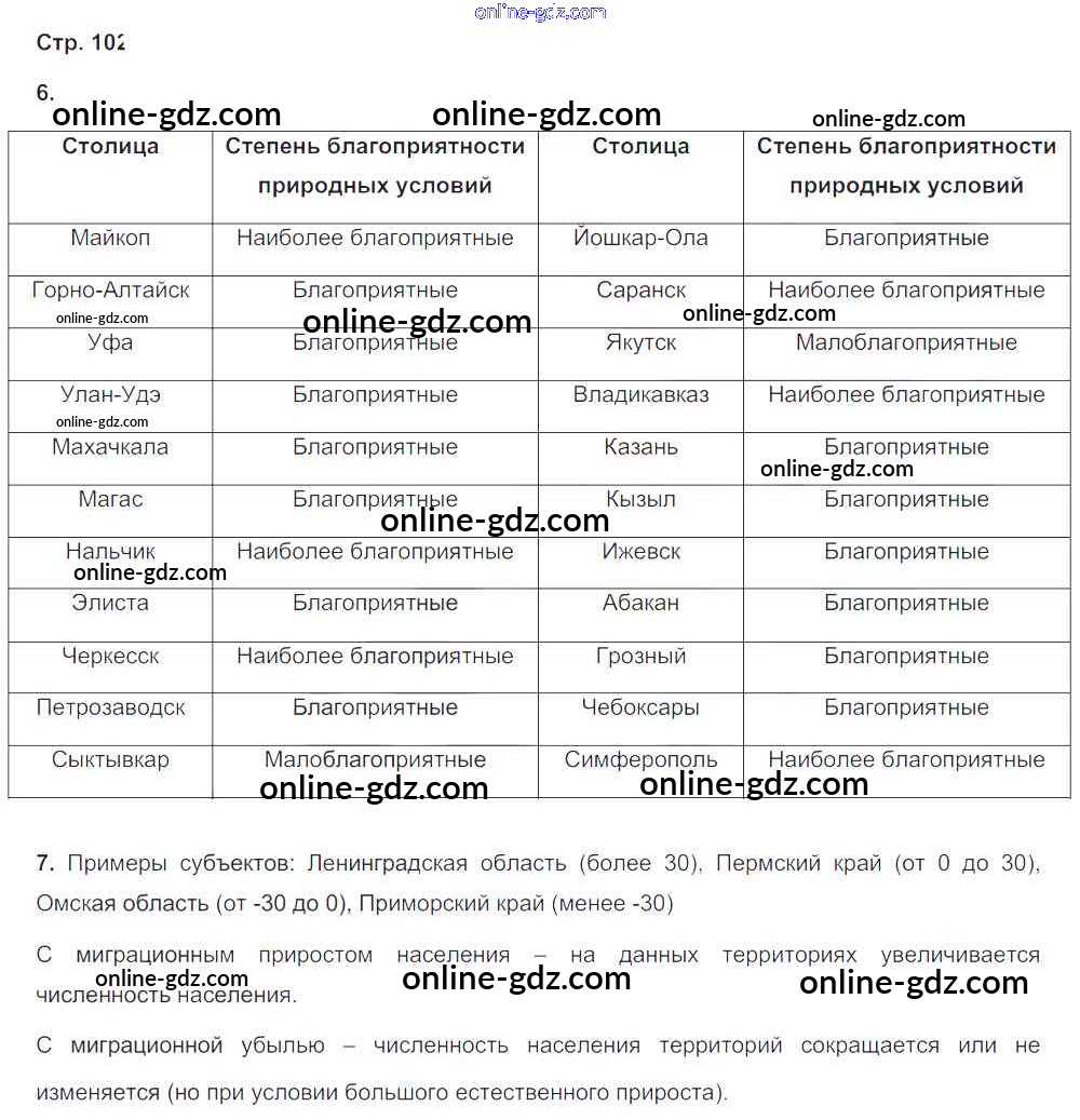 Готовые домашние задания по Географии за 8 класс Тетрадь-тренажёр Ольховая, Банников Сферы 2016 - Страницы 102