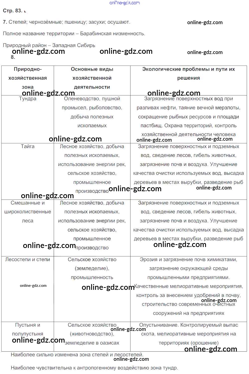 Готовые домашние задания по Географии за 8 класс Тетрадь-тренажёр Ольховая, Банников Сферы 2016 - Страницы 83