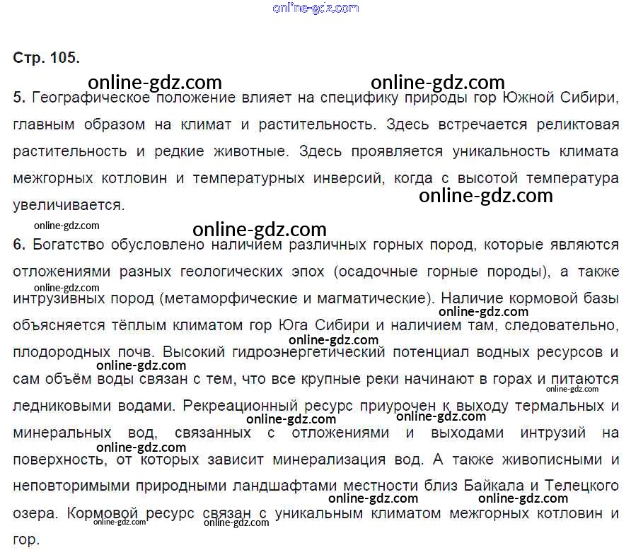 Готовые домашние задания по Географии за 8 класс Рабочая тетрадь Баринова УМК 2018 - Страницы 105