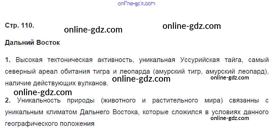 Готовые домашние задания по Географии за 8 класс Рабочая тетрадь Баринова УМК 2018 - Страницы 110