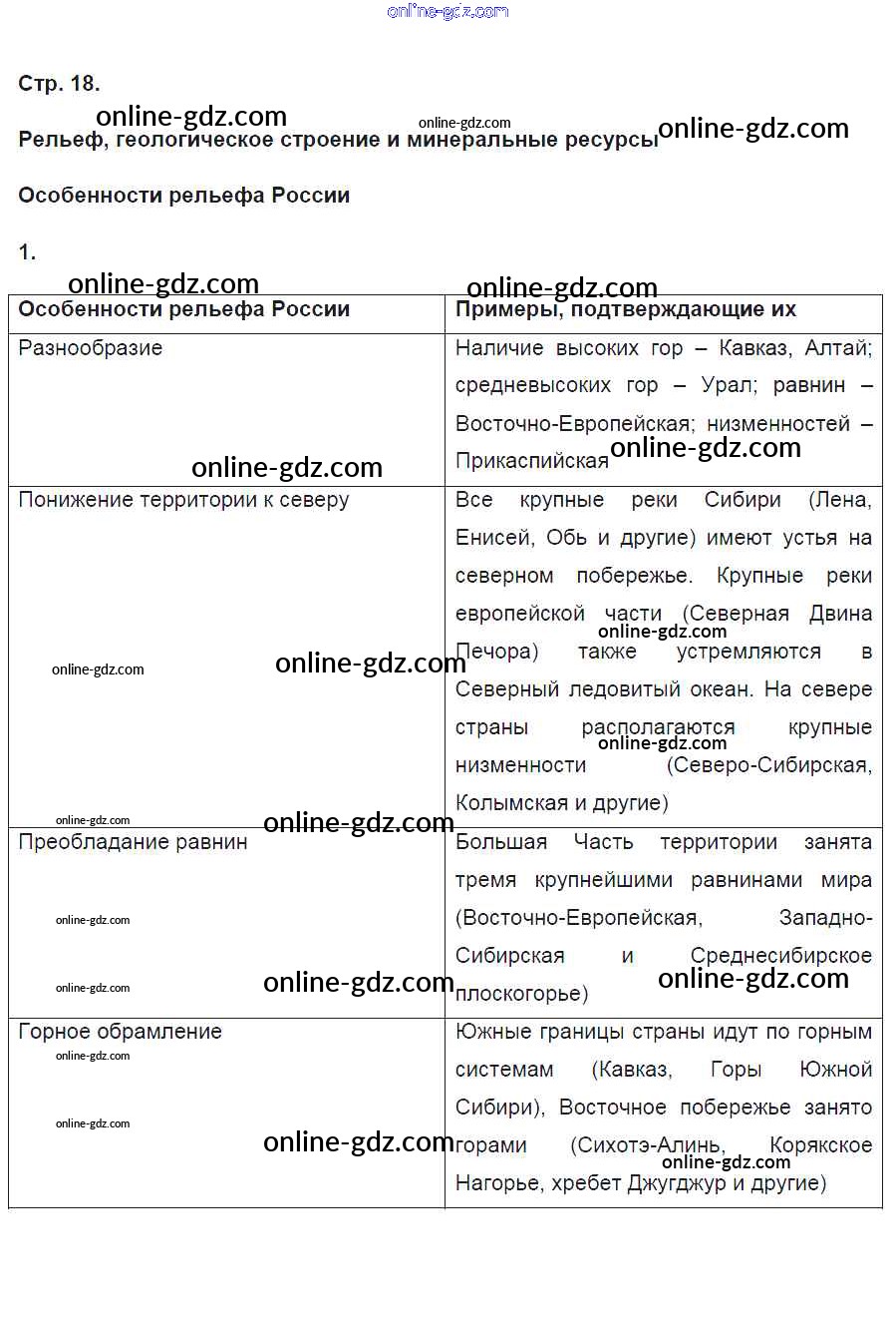 Готовые домашние задания по Географии за 8 класс Рабочая тетрадь Баринова УМК 2018 - Страницы 18