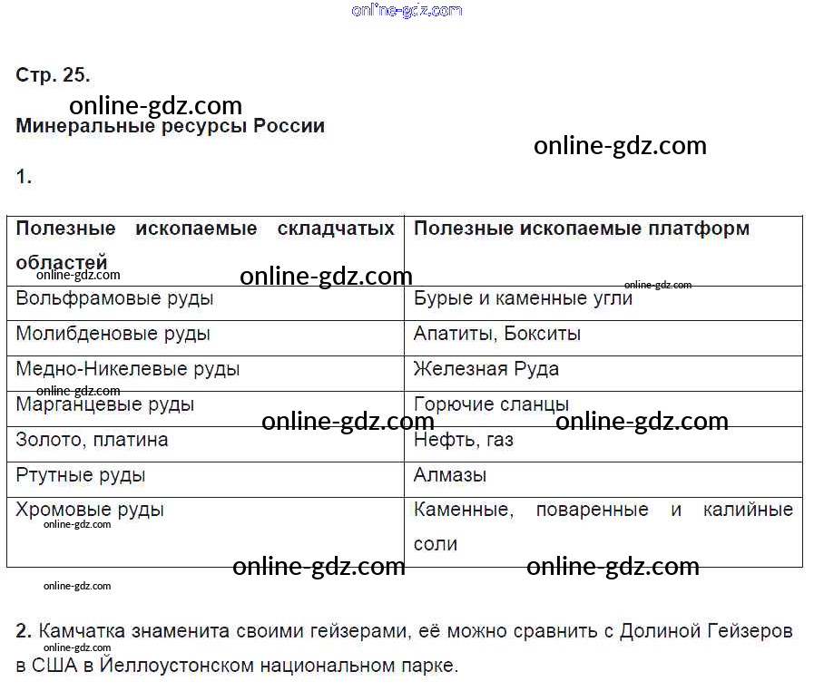 Готовые домашние задания по Географии за 8 класс Рабочая тетрадь Баринова УМК 2018 - Страницы 25