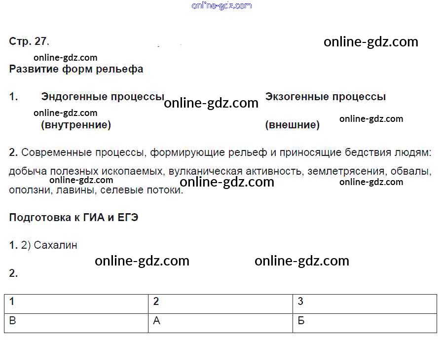 Готовые домашние задания по Географии за 8 класс Рабочая тетрадь Баринова УМК 2018 - Страницы 27