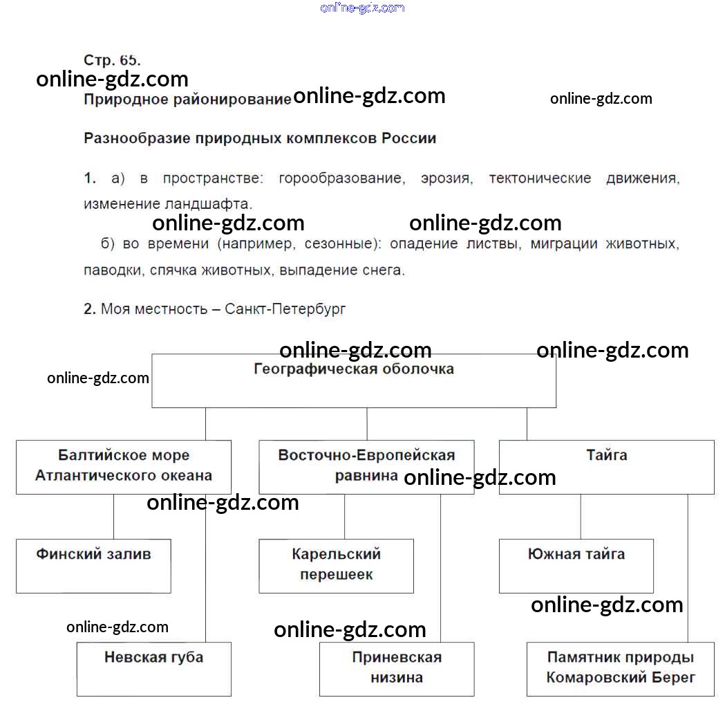 Готовые домашние задания по Географии за 8 класс Рабочая тетрадь Баринова УМК 2018 - Страницы 65