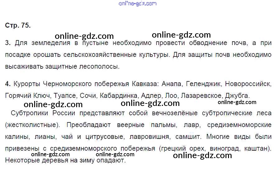 Готовые домашние задания по Географии за 8 класс Рабочая тетрадь Баринова УМК 2018 - Страницы 75