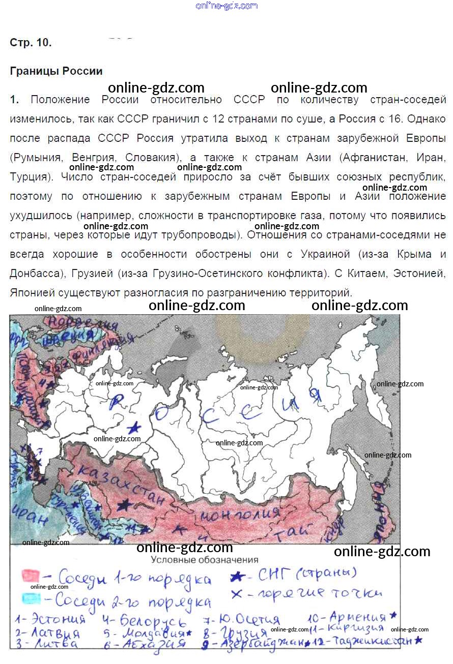 Готовые домашние задания по Географии за 8 класс Рабочая тетрадь Ким, Марченко УМК 2016 - Страницы 10