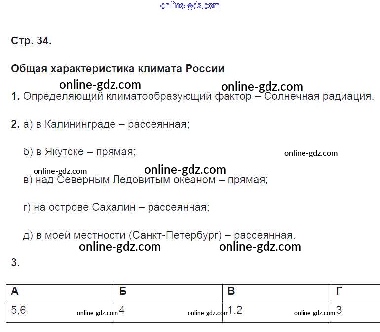 Готовые домашние задания по Географии за 8 класс Рабочая тетрадь Ким, Марченко УМК 2016 - Страницы 34