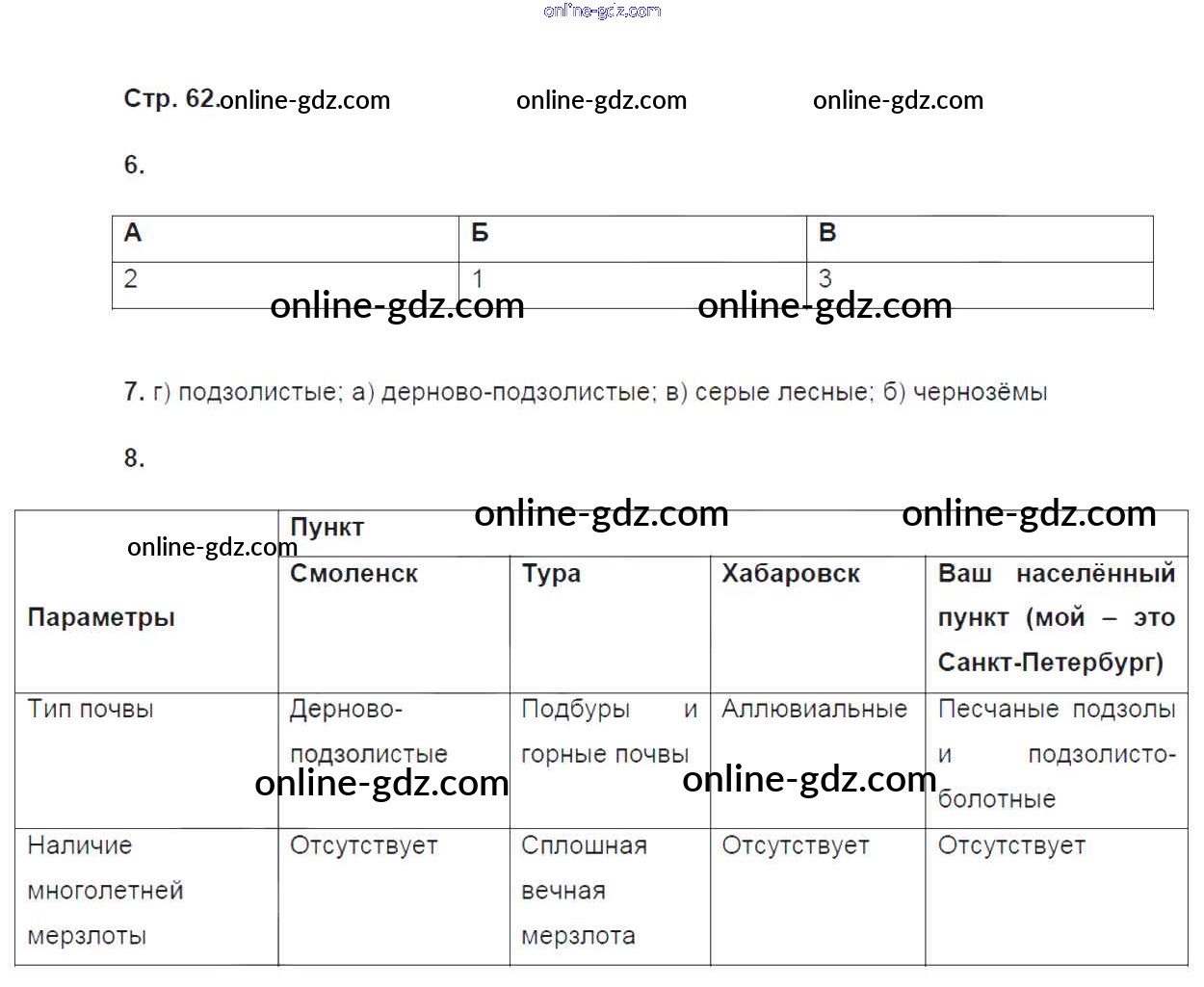 Готовые домашние задания по Географии за 8 класс Рабочая тетрадь Ким, Марченко УМК 2016 - Страницы 62