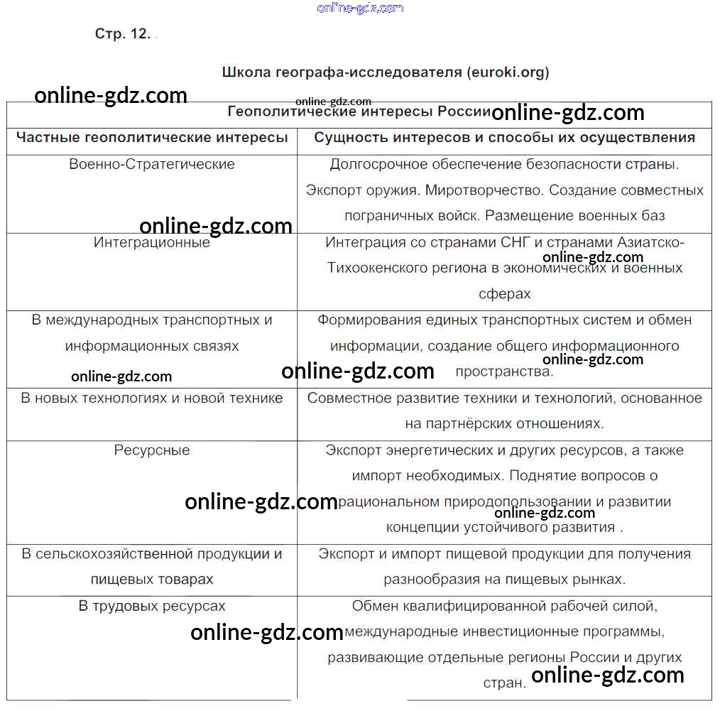 Готовые домашние задания по Географии за 8 класс Рабочая тетрадь Пятунин, Таможняя Алгоритм успеха 2017 - Часть 1. Страницы 12