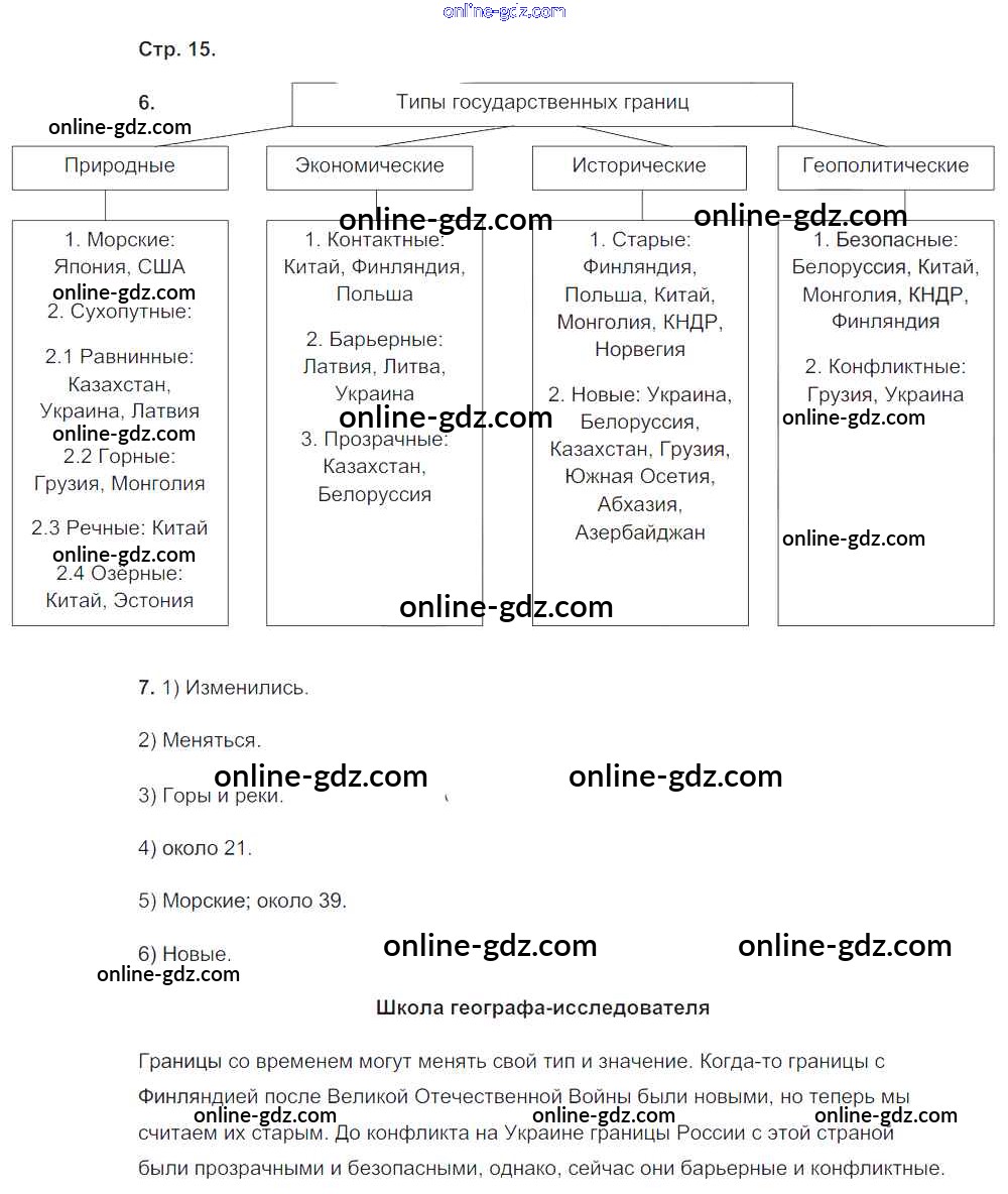 Готовые домашние задания по Географии за 8 класс Рабочая тетрадь Пятунин, Таможняя Алгоритм успеха 2017 - Часть 1. Страницы 15