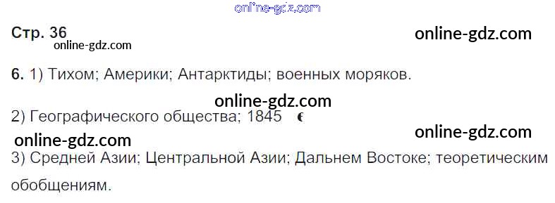 Готовые домашние задания по Географии за 8 класс Рабочая тетрадь Пятунин, Таможняя Алгоритм успеха 2017 - Часть 1. Страницы 36