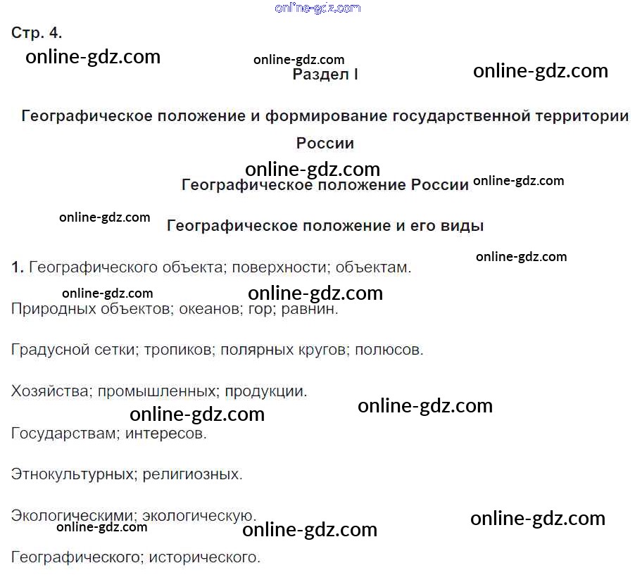 Готовые домашние задания по Географии за 8 класс Рабочая тетрадь Пятунин, Таможняя Алгоритм успеха 2017 - Часть 1. Страницы 4