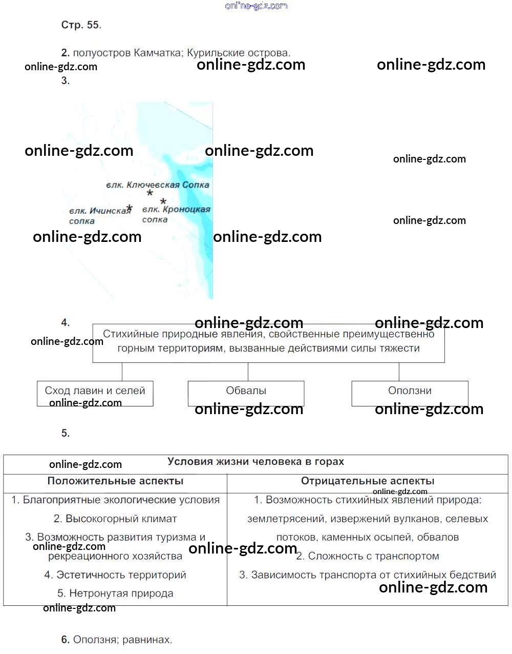 Готовые домашние задания по Географии за 8 класс Рабочая тетрадь Пятунин, Таможняя Алгоритм успеха 2017 - Часть 1. Страницы 55