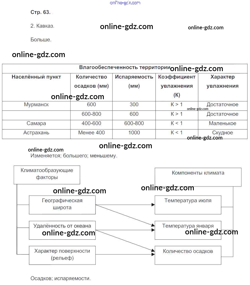 Готовые домашние задания по Географии за 8 класс Рабочая тетрадь Пятунин, Таможняя Алгоритм успеха 2017 - Часть 1. Страницы 63