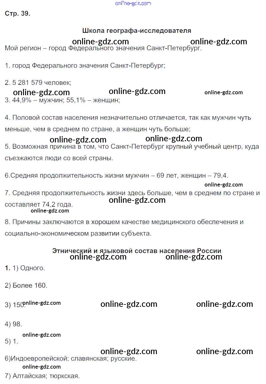 Готовые домашние задания по Географии за 8 класс Рабочая тетрадь Пятунин, Таможняя Алгоритм успеха 2017 - Часть 2. Страницы 39