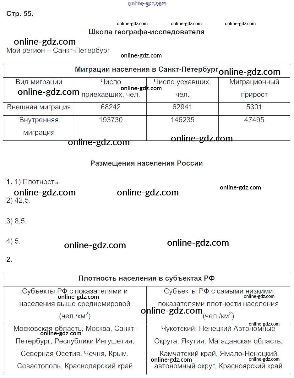 Готовые домашние задания по Географии за 8 класс Рабочая тетрадь Пятунин, Таможняя Алгоритм успеха 2017 - Часть 2. Страницы 55