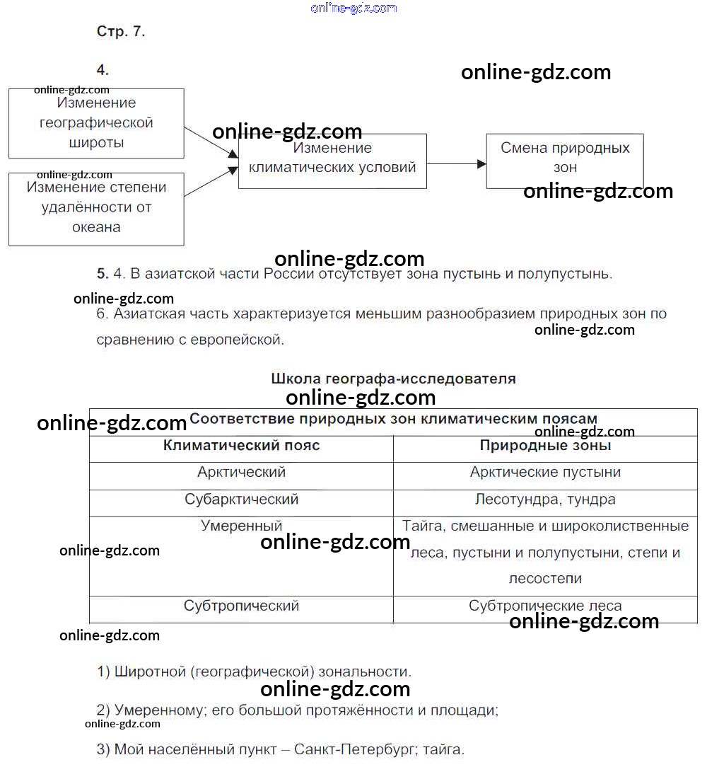 Готовые домашние задания по Географии за 8 класс Рабочая тетрадь Пятунин, Таможняя Алгоритм успеха 2017 - Часть 2. Страницы 7